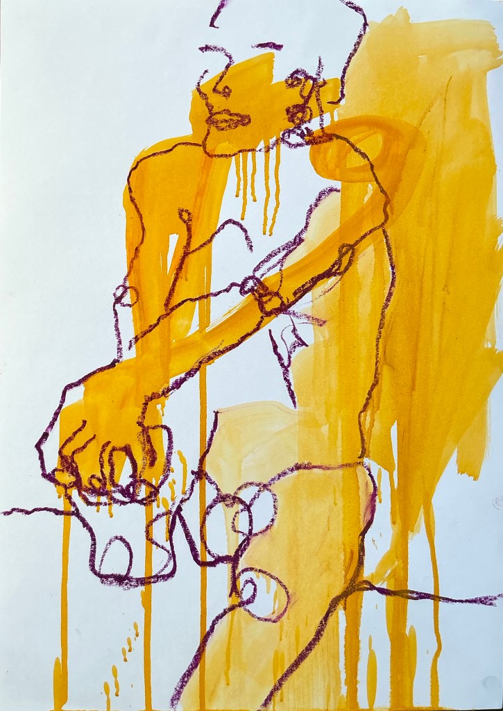 Running. Sitting. Watching. Waiting. Nähe. Beach. Alone. Fiesta. And. | Acrylic and oil pastel on paper