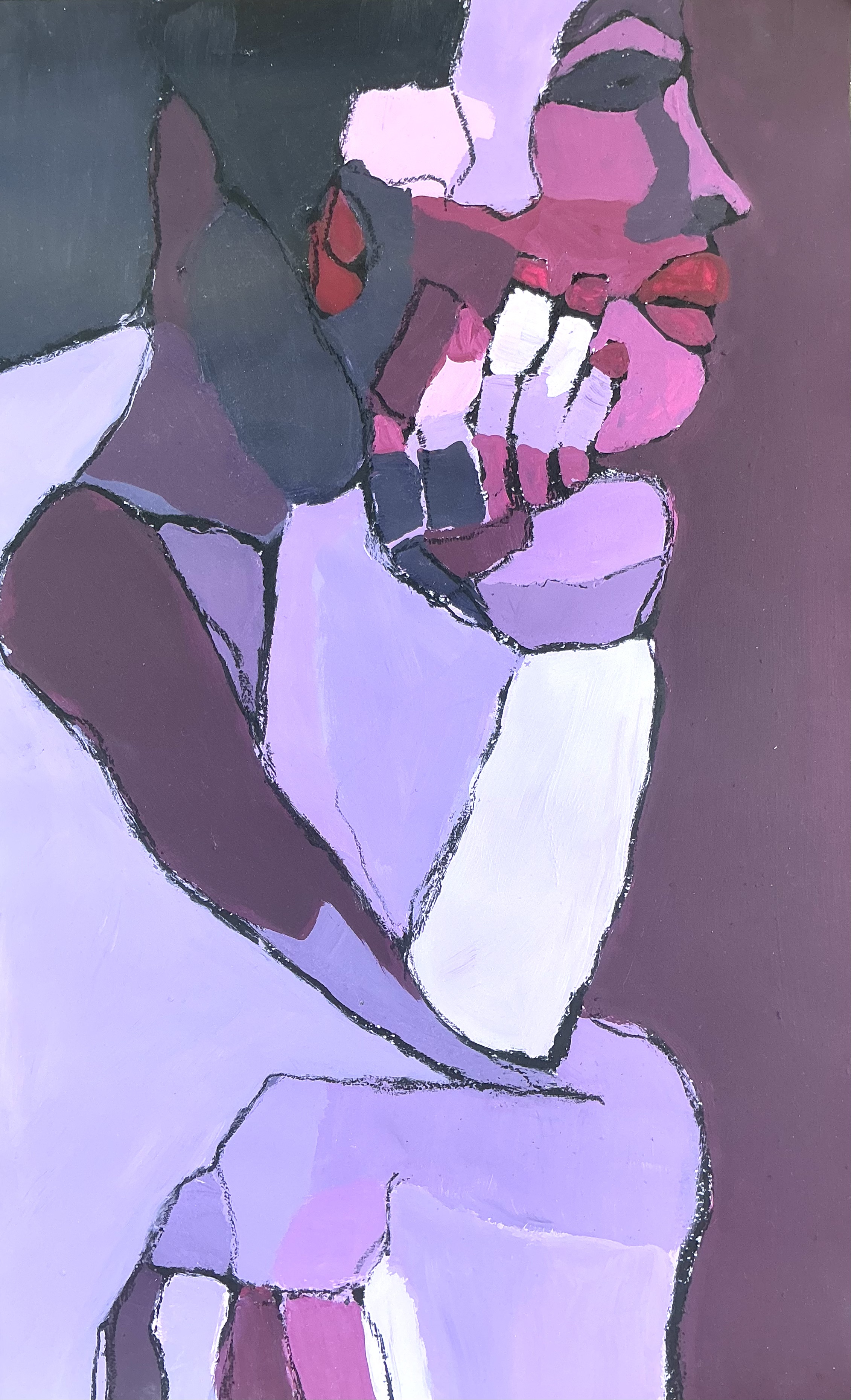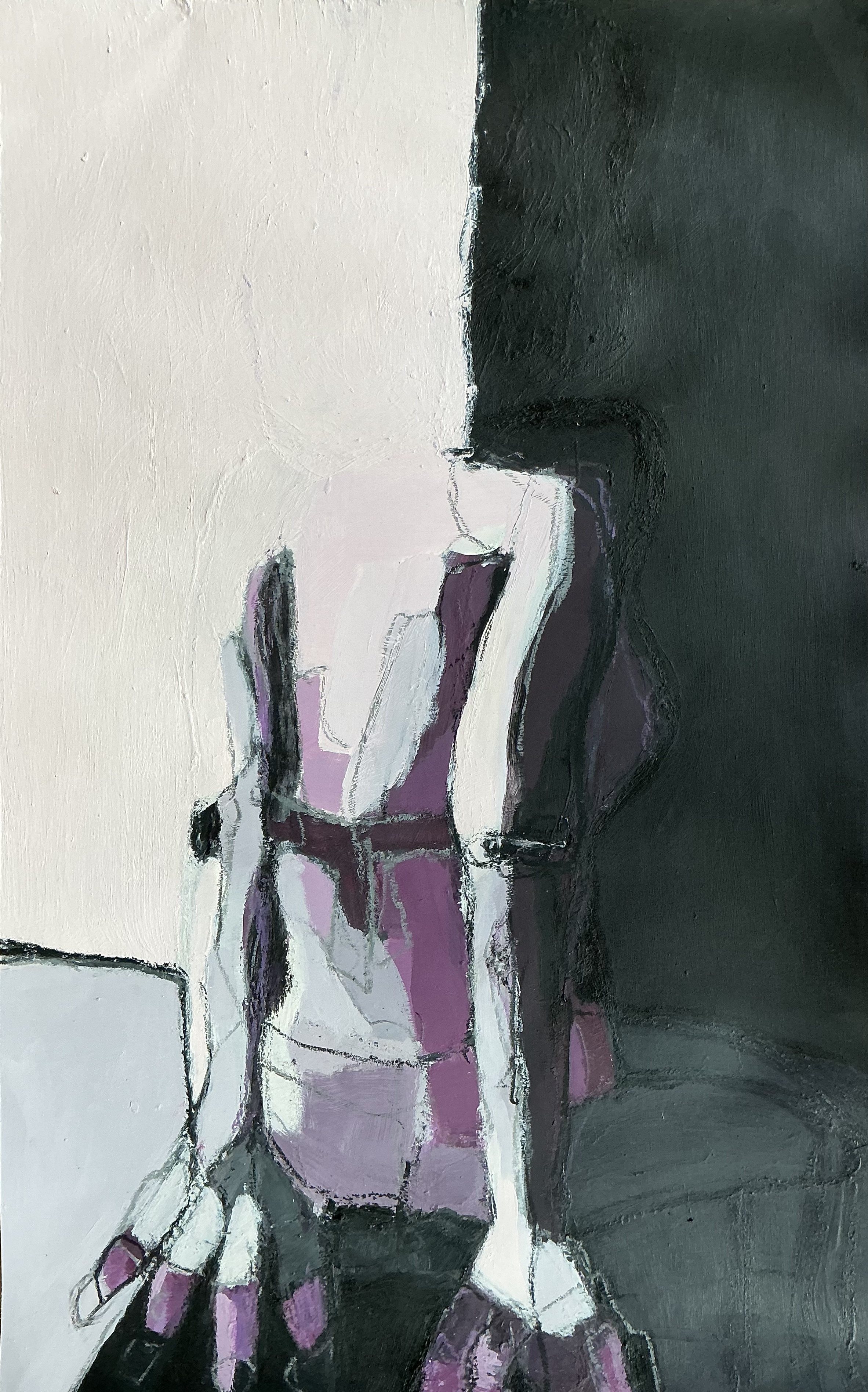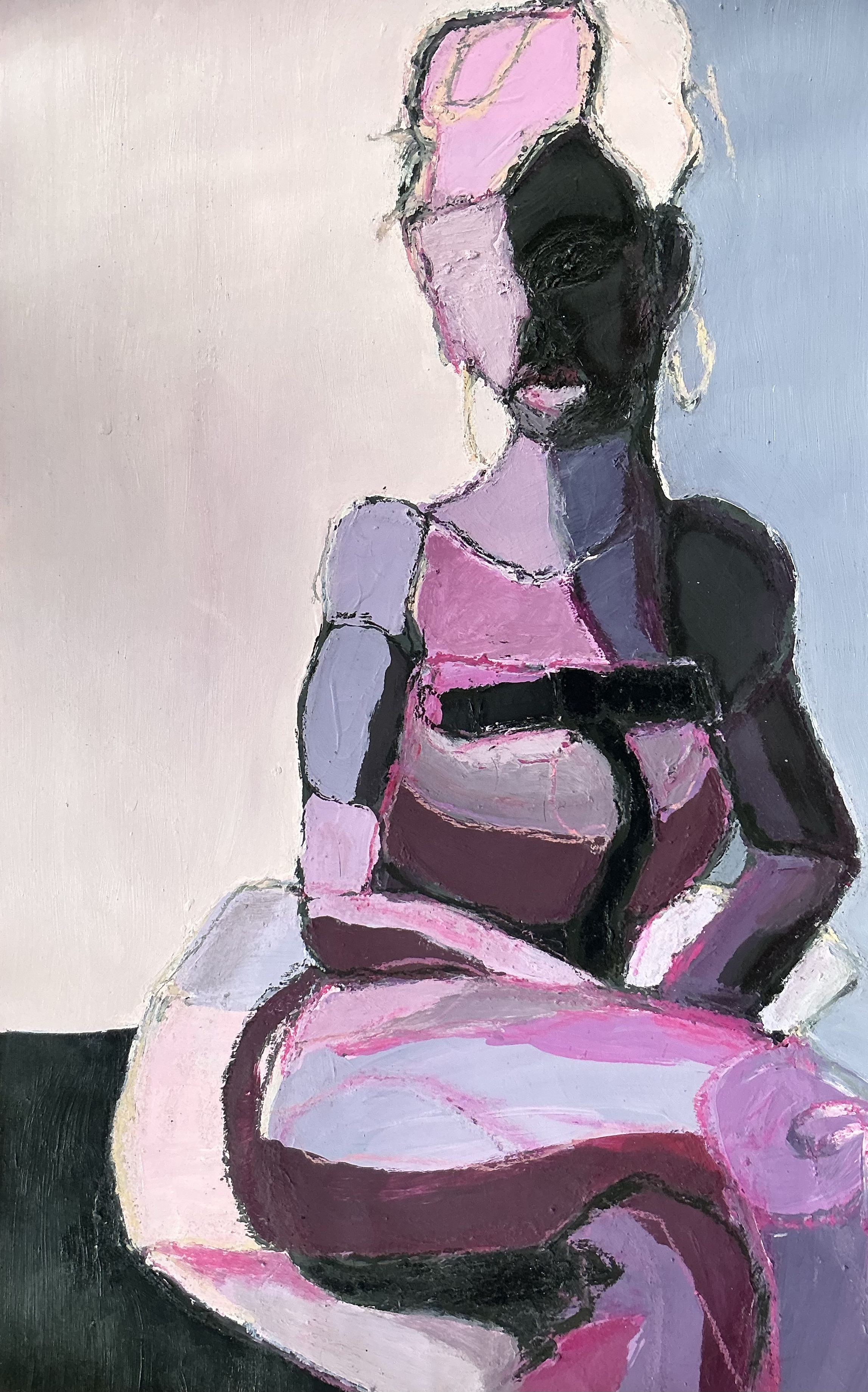 Beautiful. Waiting. Disappointed. Triste. Espalda. Back. Or. Strong. | Oil and oil pastel on paper.